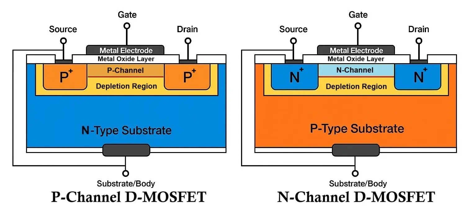 Comparison of N-Channel D-MOSFET and P-Channel D-MOSFET