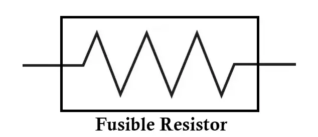 A fusible resistor uses the standard resistor symbol, but in schematics it is often: marked with “FR” or annotated with “Fusible” Sometimes drawn with a small fuse-style break or diagonal line