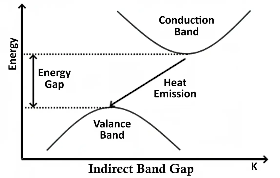In contrast, materials like silicon (Si) and germanium (Ge) cannot emit visible light efficiently; they primarily release the energy as heat rather than photons. The reason behind this lies in the energy band structure of the material.
