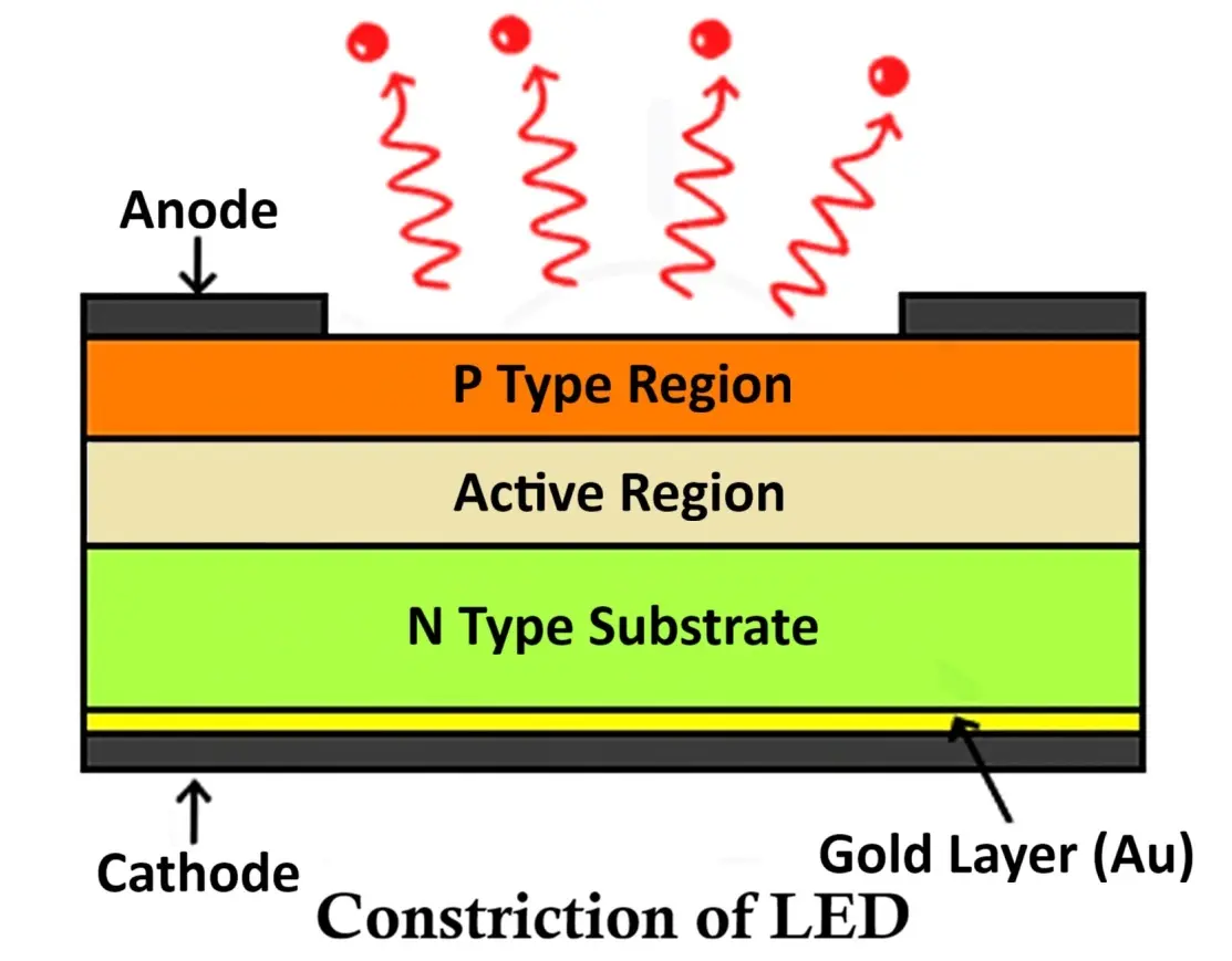 An LED (Light Emitting Diode) is a specially designed semiconductor device composed of multiple layers arranged to optimize light emission and efficiency. The basic structure of an LED includes three primary layers — the P-type semiconductor layer, the N-type semiconductor layer, and the active region (depletion region) between them.