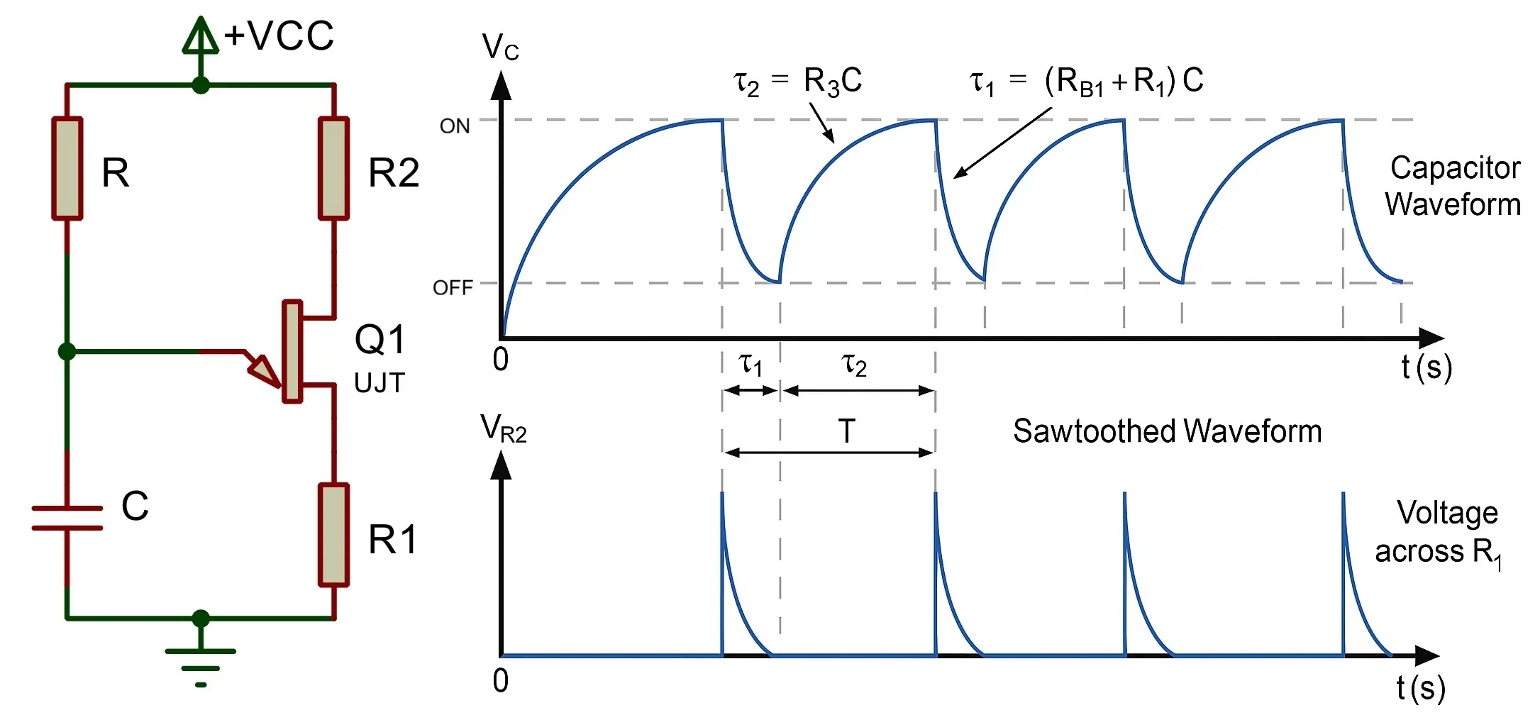 - When capacitor voltage drops below valley voltage (VV), the UJT turns OFF.