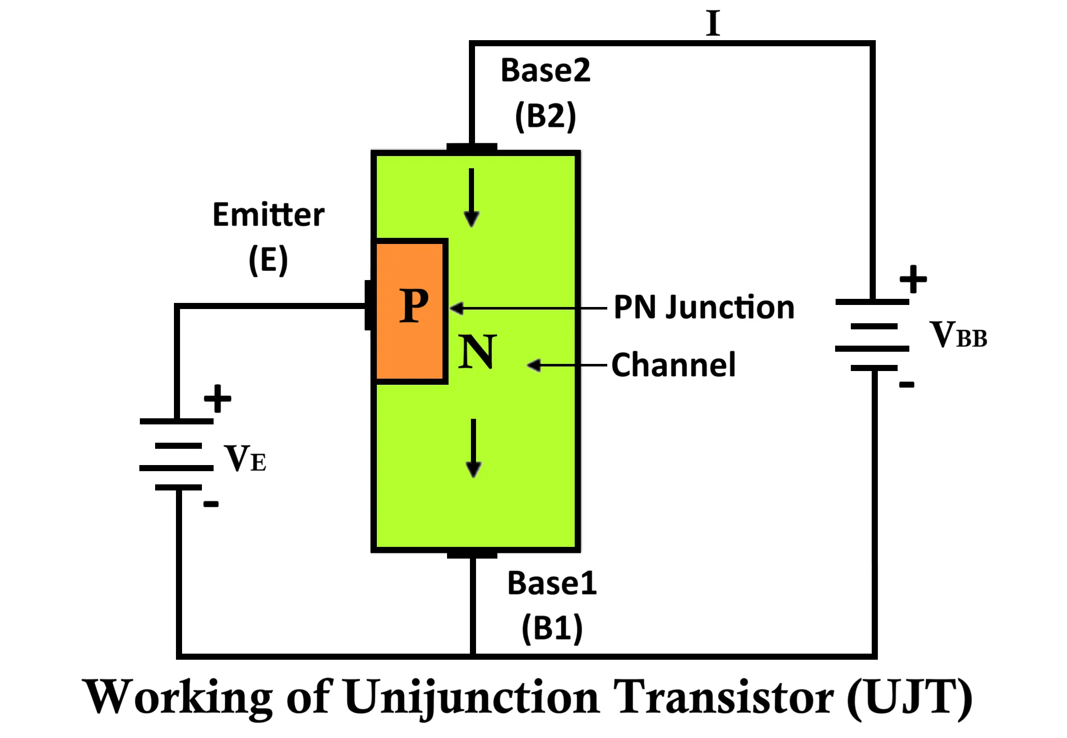 The Unijunction Transistor (UJT) is a three-terminal semiconductor device that is mainly used for triggering, pulse generation, relaxation oscillators, and phase control circuits. Unlike the Bipolar Junction Transistor (BJT) or Field Effect Transistor (FET), the UJT does not function as an amplifier; instead, it acts as a switching device with negative resistance characteristics.